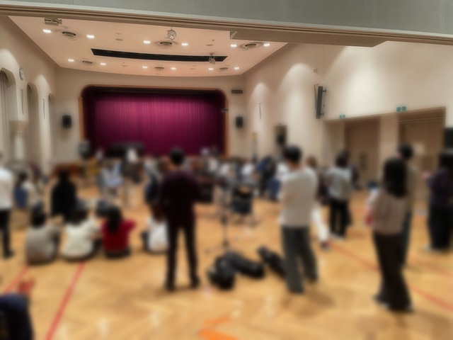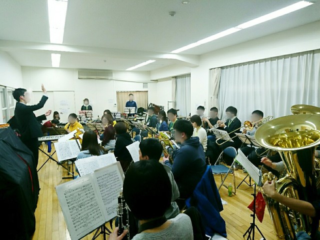 前回に引き続き江戸川区内の施設で、「陽はまた昇る/P.スパーク」「吹奏楽のための風之舞/福田洋介」「吹奏楽のための第一組曲/G.ホルスト」の3曲を練習しました。